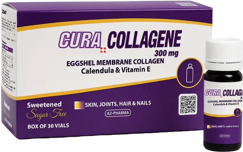 CURA+COLLAGENE soutient l’élasticité et fermeté de la peau, fortifie les cheveux et les ongles, contribue à la régénération du cartilage et renforce les articulations.